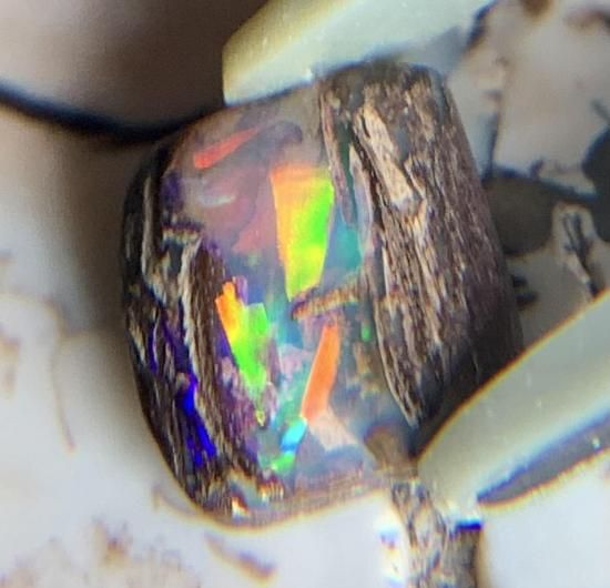 濃く美しい輝きです。極上のウッドオパールでございます。
